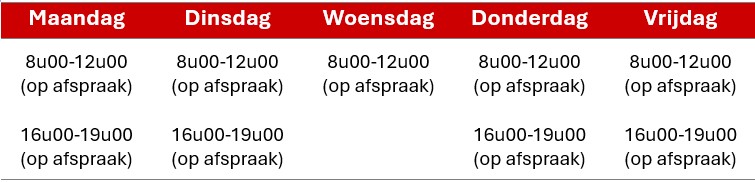 Een huisbezoek kan enkel telefonisch worden aangevraagd via het nummer 056 14 00 90 en dit bij voorkeur voor 11 uur ’s morgens.